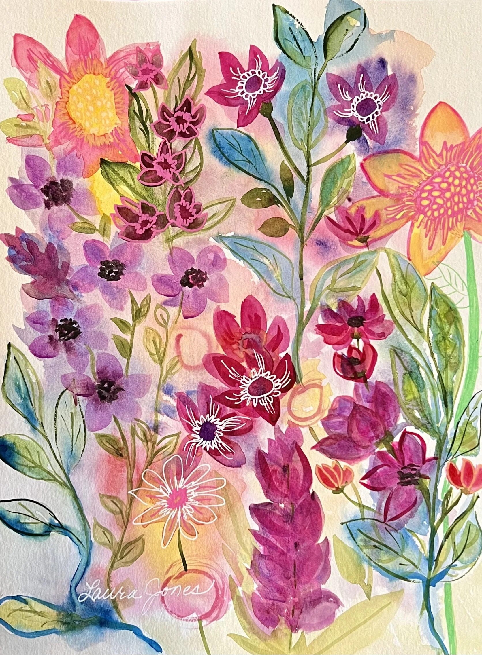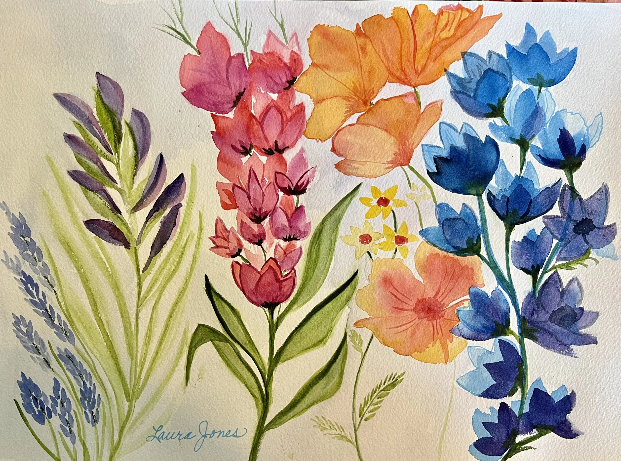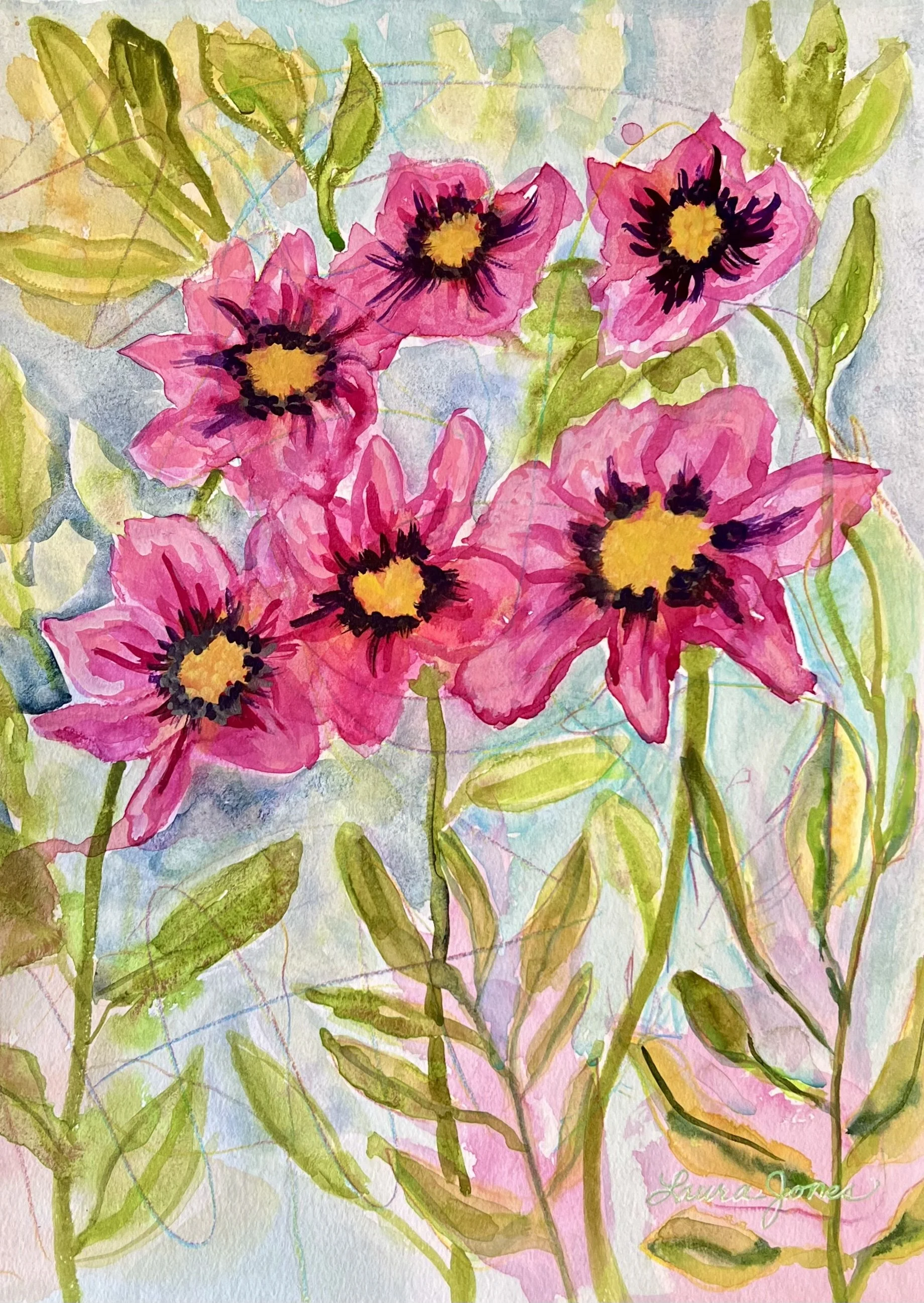 This painting was inspired by the California Wildflowers this last spring. There was so much rain that the wildflowers, tree and hills were an explosion of color. It was truly a sight to behold. You’ll be seeing more flower artworks during the month.