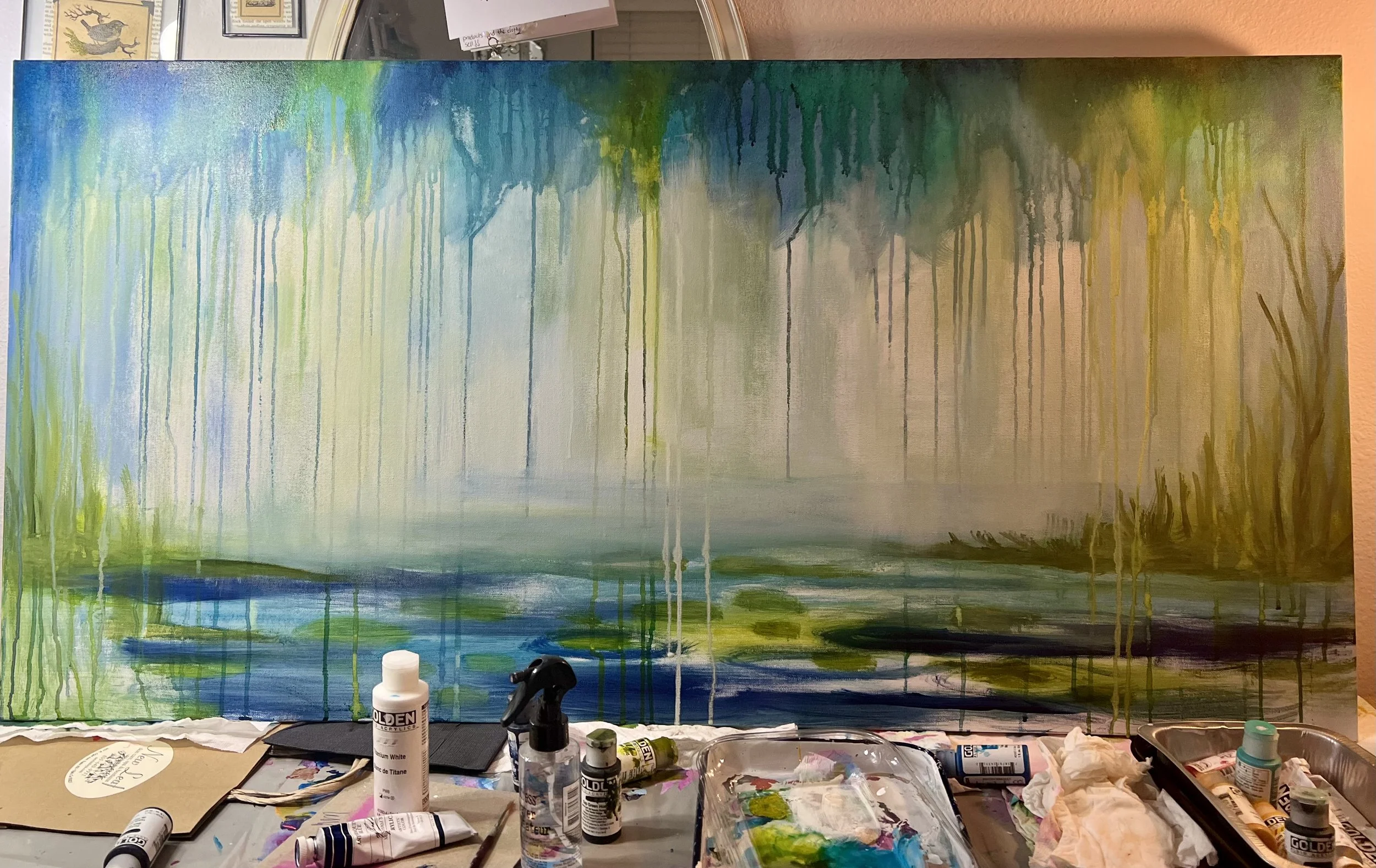 Each painting teaches me a lesson…sooner or later. I have a struggle with abstract paintings. I can never decide what to do next and when it’s finished. As I reflected on how I was feeling during this painting, I realized I just let it flow. No second guessing or comparisons to others work. I enjoyed the colors and embraced the direction I was going.My lesson- no matter whatI’m doing, be myself, do what I do best, and listen to what your body is telling you. It’s enough to just be merits my voice. When I dont overthink things, it’s easier and turns out well. Be true to yourself. Click her for more information on how to be a part of this party.