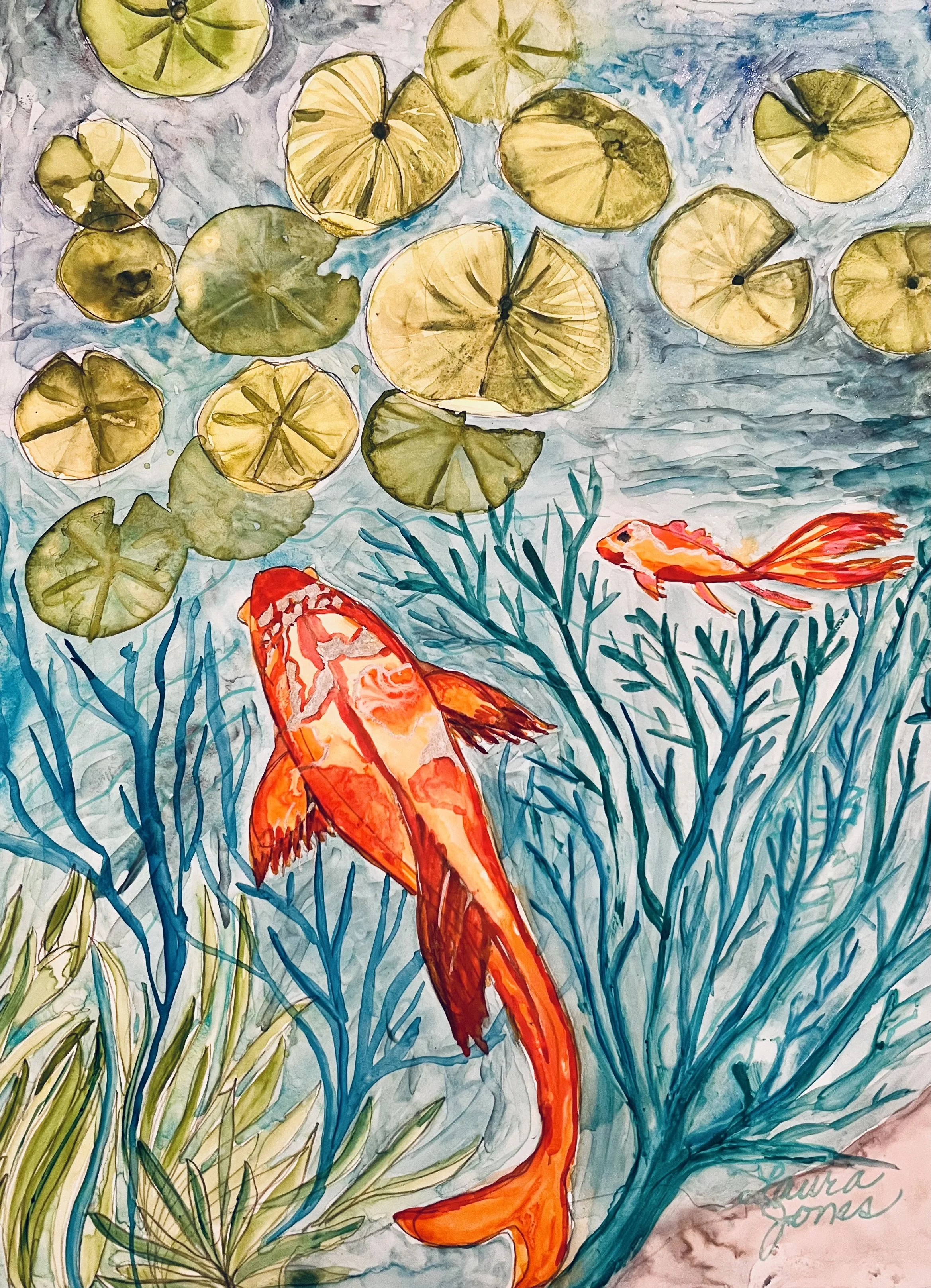 These two fish are just swimming along on a warm summer day. Maybe they are meeting for lunch and a chat. Soaking up the sun and enjoying the day. That’s the story I feel. What story do you feel?