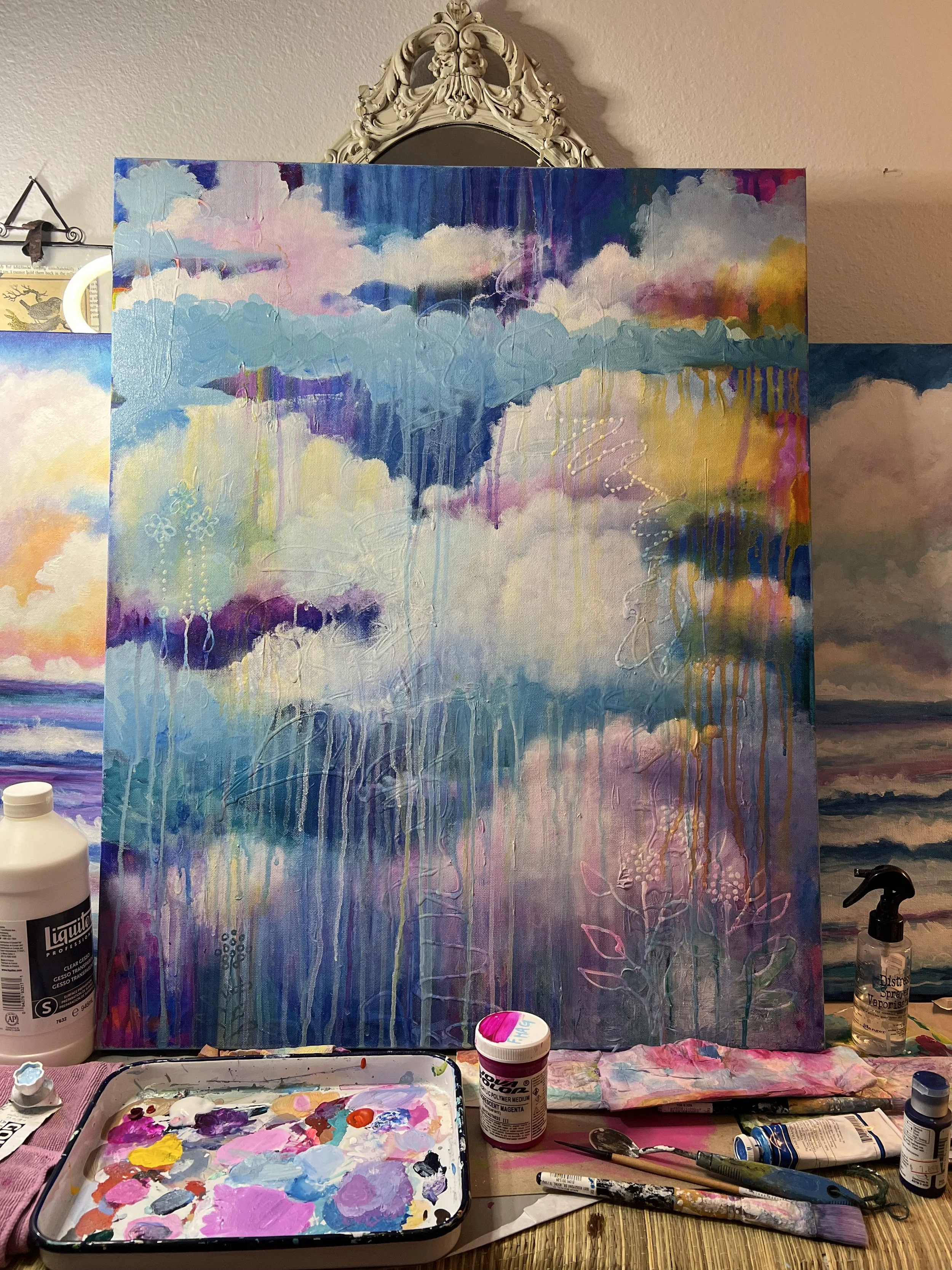 I love how this turned out. Somedays the painting just pours out, this painting was one of those! This made me think of how when a balloon gets loose it just floats away. They do so peacefully. If it were only so easy to let our distractions and limiting beliefs float away. Click here to hang “LETTING GO” in your space.