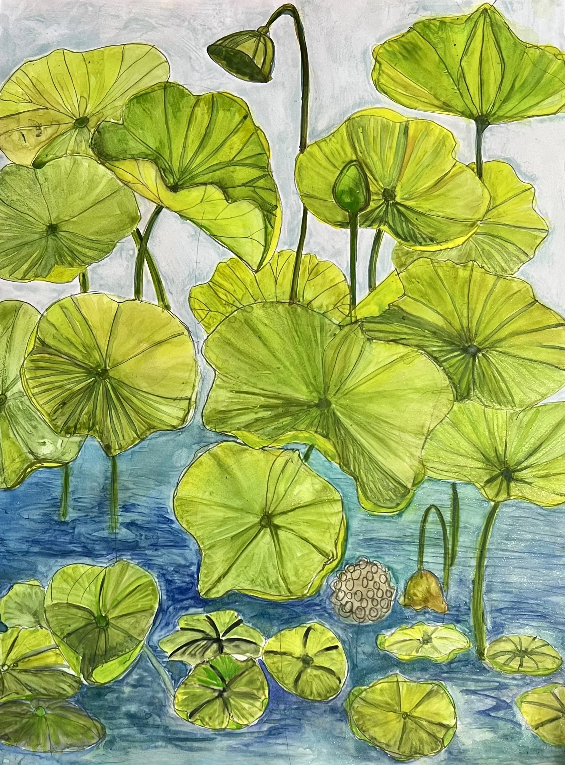 This painting was inspired by the beautiful gardens I visited this spring in California. The Huntington Gardens and Descanso Garden. Absolute eye candy!